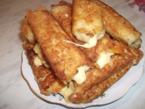 Хрустящие и красивые снаружи, тянутся и тают внутри. Прекрасное блюдо, которое не займёт у вас много времени, особенно если остались отварные картофелины со вчерашнего ужина. По желанию можно разнообразить начинку томатами, курицей и т.д. Отварной картофель натираем на терке. Подготавливаем начинку из сыра и зелени, солим слегка, так как обычно сухари для панировки бывают очень солёными. Яйца разбиваем в отдельную миску и смешиваем с любимой специей. Теперь смочите руки водой и сформируйте небольшой пласт из картошки, в серединку начинку и заверните. Не делайте большие иначе будет неудобно жарить. Обмакиваем в яйцах, затем в панировочных. Обжариваем в большом количестве растительного масла, как во фритюре, с двух сторон до золотистости. Сразу скажу, вкуснее всего подходит к ним сметанно-чесночный соус. И кушать лучше горячими, приятного аппетита, не забудьте промокнуть салфетками и добавить в ваше блюдо главный ингредиент- любовь!