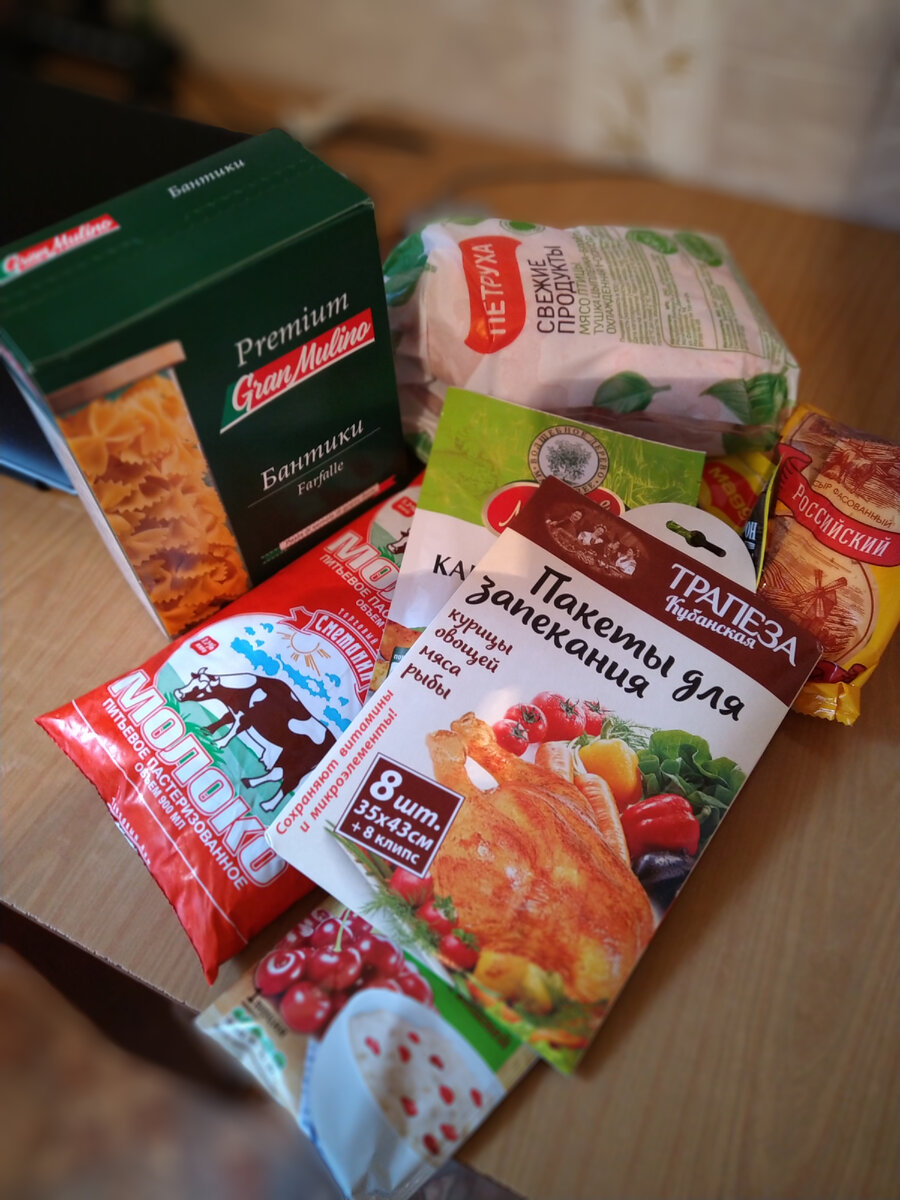 Захотелось приготовить два вкусненьких ужина на выходные. Чтобы не думать завтра что готовить и снова не бежать за продуктами - закупаемся сразу на два дня. И так, что я купил. На все про все с учётом скидок ушло у меня 437 рублей. Очень дёшево мне обошлись пакеты для запекания. На набор из 8 штук заплатил всего 31.90. Так же по очень хорошей цене выцепил бантики фирмы GranMulino. Отличные макароны премиум класса. Сейчас на них проходит скидка 50%. В общем подойдем к ужину. Сегодня решил приготовить макароны в сливочно-сырном соусе ( для этого купил специально приправу Магги) и запечь в духовке курицу со специями. У меня не кулинарный канал, по этому в азы готовки углубляться не будем. Скажу только, что перед тем как засовывать курочку в пакет для запекания, я разрубил ее на 2 части, чтобы грудка не была сухой и специи распределились равномерно по всему мясу. Далее по чеку. Молоко и сыр частично пойдут в сливочно-сырном соус. Овсяную кашу взял себе на завтрак. Приправа для картофельн