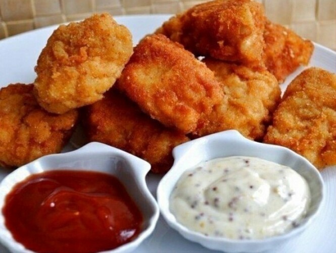Могу поспорить, что у каждого, когда либо побывавшего в McDonald's-се порой появляется желание снова покушать в этом заведении, но скорее всего McDonald's далеко от вас, и идти до него что бы просто покушать на мой взгляд просто глупо... Поэтому хочу предложить быстрый рецепт приготовления наггетсов как в McDonald's-е. И так... Сегодня нам понадобится: Куриная грудка-400г Твёрдый сыр-200г Яйцо куринное-2шт Пшеничная мука-100г Чёрный молотый перец-1/4 чайной ложки. Приступим к приготовлению: 1.Нарезаем куриные грудки тонкими продолговатыми ломтиками поперёк волокон. Параллельно на мелкой тёрке натераем сыр. 2.Взбиваем яйцо до однородности. 3. Муку смешиваем с солью и перцем. С солью аккуратно, особенно если сыр соленый. В случае с пармезаном можно вообще не солить. Мясо обмакиваем поочередно в муку, яйцо и сыр. 4. Обжариваем кусочки филе на среднем огне до появления лёгкой золотистой корочки. Приятного аппетита!