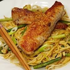 Лапшу откинуть на дуршлаг и обдать холодной водой . Смешать с пассерованной савойской капустой. Подать к столу с жаренной рыбой и горчичным соусом Время приготовления 35-40 мин. Приятного аппетита!!!!