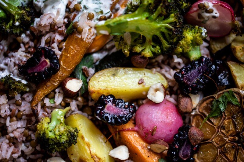 Ужин в четверг из серии из 5 ужинов с мини-кухней может выглядеть примерно так ... Жареные овощи, приготовленные на тарелке, подаются с чечевицей, смешанной с рисом, которая будет готова со вторника и среды. Это красивая летняя вегетарианская еда, которая снова сбалансирована и богата. Может показаться, что это займет много времени, но это больше пассивное время, когда овощи запекаются в духовке. Для запеченных овощей вы можете использовать чечевицу, рис или квину, которые вы откладывали в холодильник с предыдущих дней, а когда вы добавляете свежий йогурт с тмином и кориандром, я думаю, что вся семья будет наслаждаться едой. Не беспокойтесь о овощном наборе. Используйте то, что в сезон, и вы также можете использовать эту возможность, чтобы экономично опустошить ящик для овощей и обработать различные остатки, прежде чем они сломаются. Никаких «безотходных» рецептов, думаю, хватит! Если вы хотите сделать блюдо немного особенным, бросьте кусочек фруктов, и ужин неожиданно получит совреме