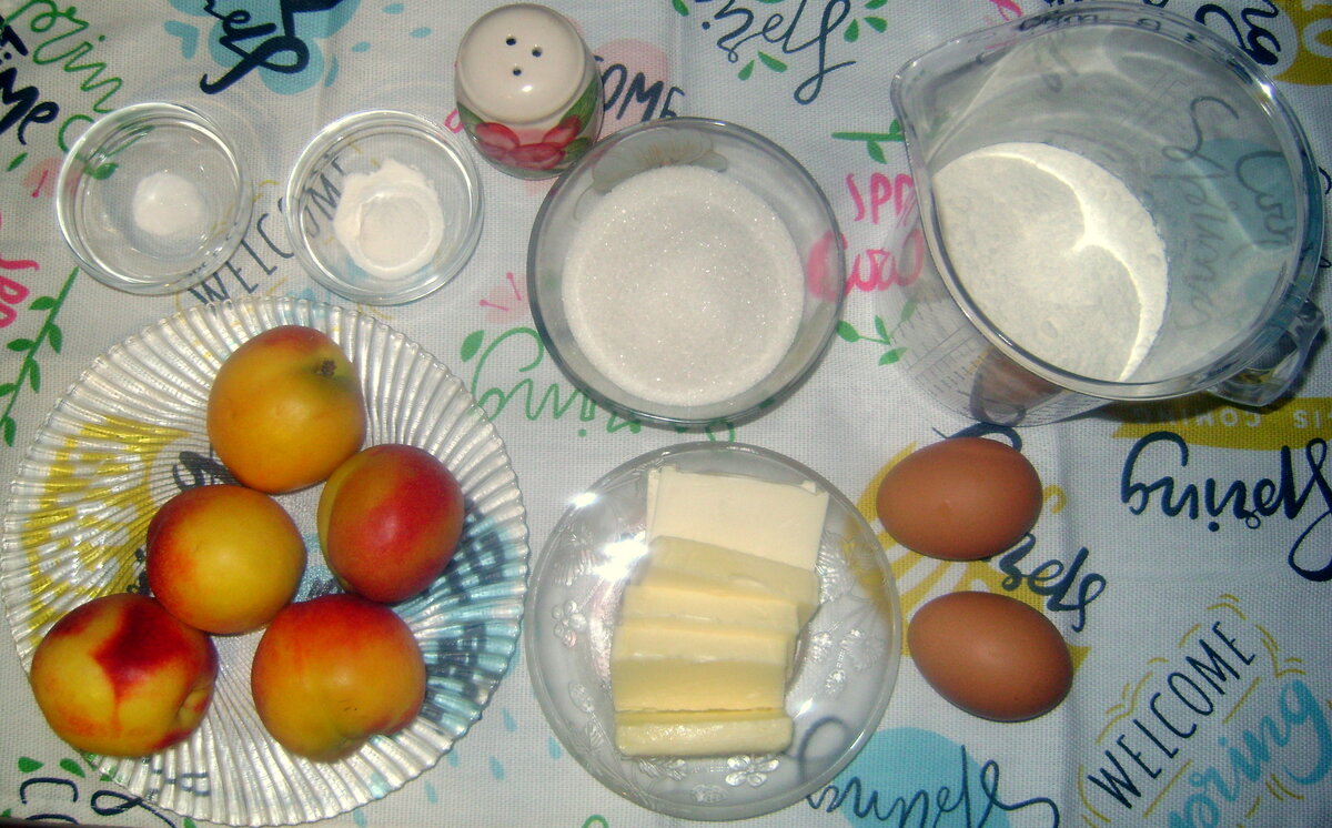Доброго времени суток! Сегодня у нас в меню невероятно вкусный десерт – пирог с нектаринами. Кто-то скажет, что летом фрукты надо есть только в свежем виде – соглашусь, но, не всегда бывает, что фрукты попадаются дозревшими, а побаловать себя любимым лакомством очень хочется. На этот случай предлагаю попробовать этот рецепт. Ингредиенты: Мука пшеничная – 180 - 200 гр. Сливочное масло- 120 гр. Яйцо – 2 шт. Разрыхлитель теста – 1 чайная ложка Щепотка соли Щепотка ванилина Сахар – 100 гр. + 3 столовые ложки для посыпки Нектарины среднего размера – 5- 7 шт. Приготовление: 1. В миску кладем размягченное сливочное масло и сахар, хорошо перемешиваем, чтобы масло начало светлеть (можно миксером, можно просто венчиком или лопаткой) 2. В масляную смесь выбиваем 2 яйца и также хорошо вымешиваем, здесь лучше конечно воспользоваться миксером или насадкой "венчик" на блендер, но можно и просто взбить венчиком, просто получится немного дольше. 3. В масляно-яичную смесь добавляем щепотку соли
