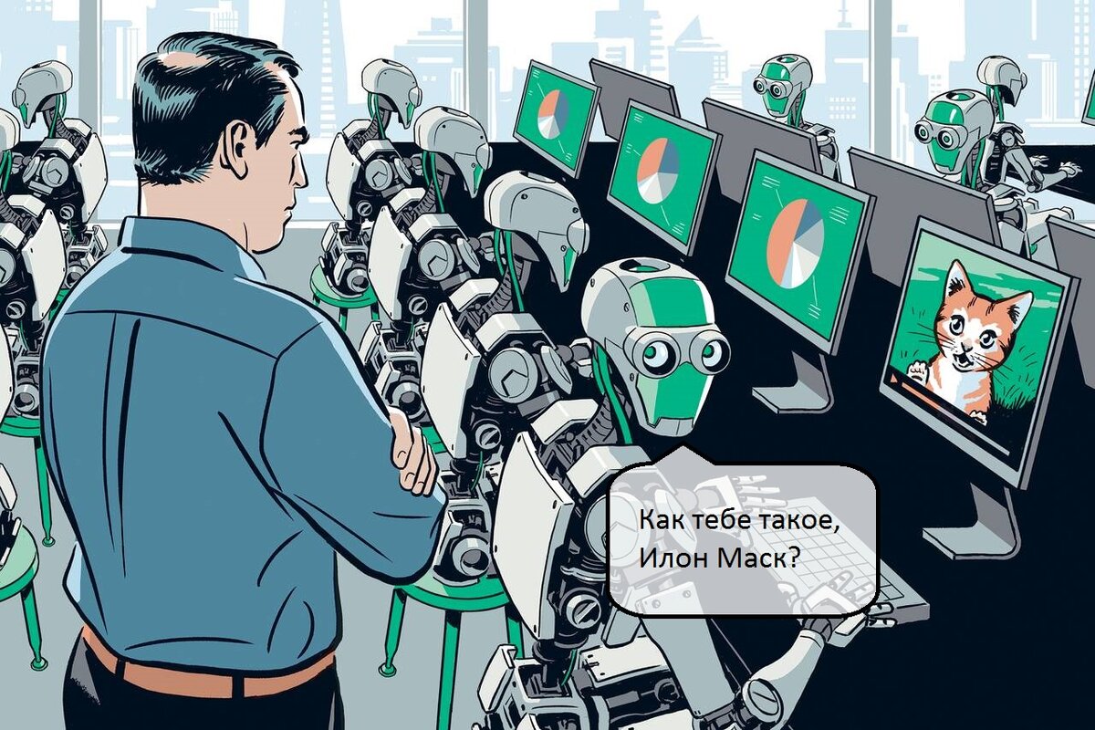 Вы уже наверняка заметили, как стремительно во всем мире развиваются IT-технологии и как живых людей заменяют роботами. Очень интересная тема для фантазий о будущем. Что нас ждет? У Илона Маска на предприятии работает примерно 30 человек. Да, вы правильно прочитали не 30 тысяч, а 30 человек. Всего. Вы помните, да, чем занимается Илон Маск и его сотрудники? Так вот, все эти тридцать человек выполняют деятельность охранников и уборщиков. А кто решает остальные задачи предприятия, сам Илон? Ну, в какой-то мере, да, но вообще у него там все автоматизировано и работу выполняют РОБОТЫ. Пока мы можем спать спокойно: у нас есть время на развитие, чтобы не остаться без работы, поскольку в России развитие технологий не такое...кхм, стремительное, мы не являемся лидерами в данной области. Но Минтруд активно разрабатывает профстандарты для IT-отрасли. Мой знакомый, который занимается развитием технологий, за чашечкой кофе порассуждал о нашем будущем. На развитие этой сферы для объема рынка IT нео