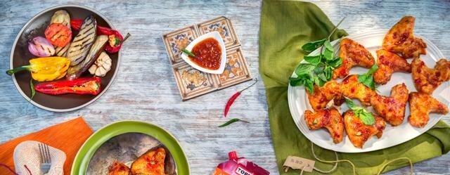Отличительная черта большинства азиатских блюд – готовятся просто и быстро. Попробуйте сделать куриные крылышки по-азиатски: замаринуйте их в кисло-сладком соусе с кусочками кайенского и болгарского перца для придания вкусу мяса нежности и пикантности. Ваши гости не останутся равнодушными! Ингредиенты 1. Куриные крылышки – 700 г 2. Маринад "для шашлыка" (острый) – 200 г 3. Овощи-гриль Рецепт 1. Замаринуйте куриные крылышки в маринаде на 1 час. 2. Выложите крылышки на противень и выпекайте 40 мин. 3. Смажьте крылышки маринадом ещё раз и отправьте обратно в духовку еще на 15 мин. 4. Блюдо готово к подаче. 5. Приятного аппетита!