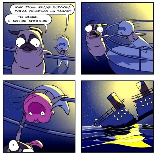 С приходом ребенка жизнь меняется, появляются новые обязанности и ответственность. А если ещё есть забавный мопс. то из этого можно делать целые комиксы. Именно этим и стала заниматься молодая мама. Она фантазирует на разные темы и её это нравится. Давайте посмотрим на это искусство, которое она изображает. Чужой У мопса появился конкурент. И он решил, что это не только его враг, но и всех остальных, поэтому он совершает героический поступок и спасает всех от него. Перевернутый мир Родителям действия мопса кажутся очень странными и необычными, но собака знает то, чего не знают они. Ребенку будет приятно увидеть нормально изображение, если это правда. Братик У Люси был очень сложный день и наконец-то наступает время спать. Теперь можно и отдохнуть, но когда она услышала слова его родителей, то нужно было немедленно действовать. Фокус Дэвид решил повторить популярный челлендж из интернета. Ребёнку это явно понравилось, а вот мопса этим удивить совсем не получилось, хотя возможно она про
