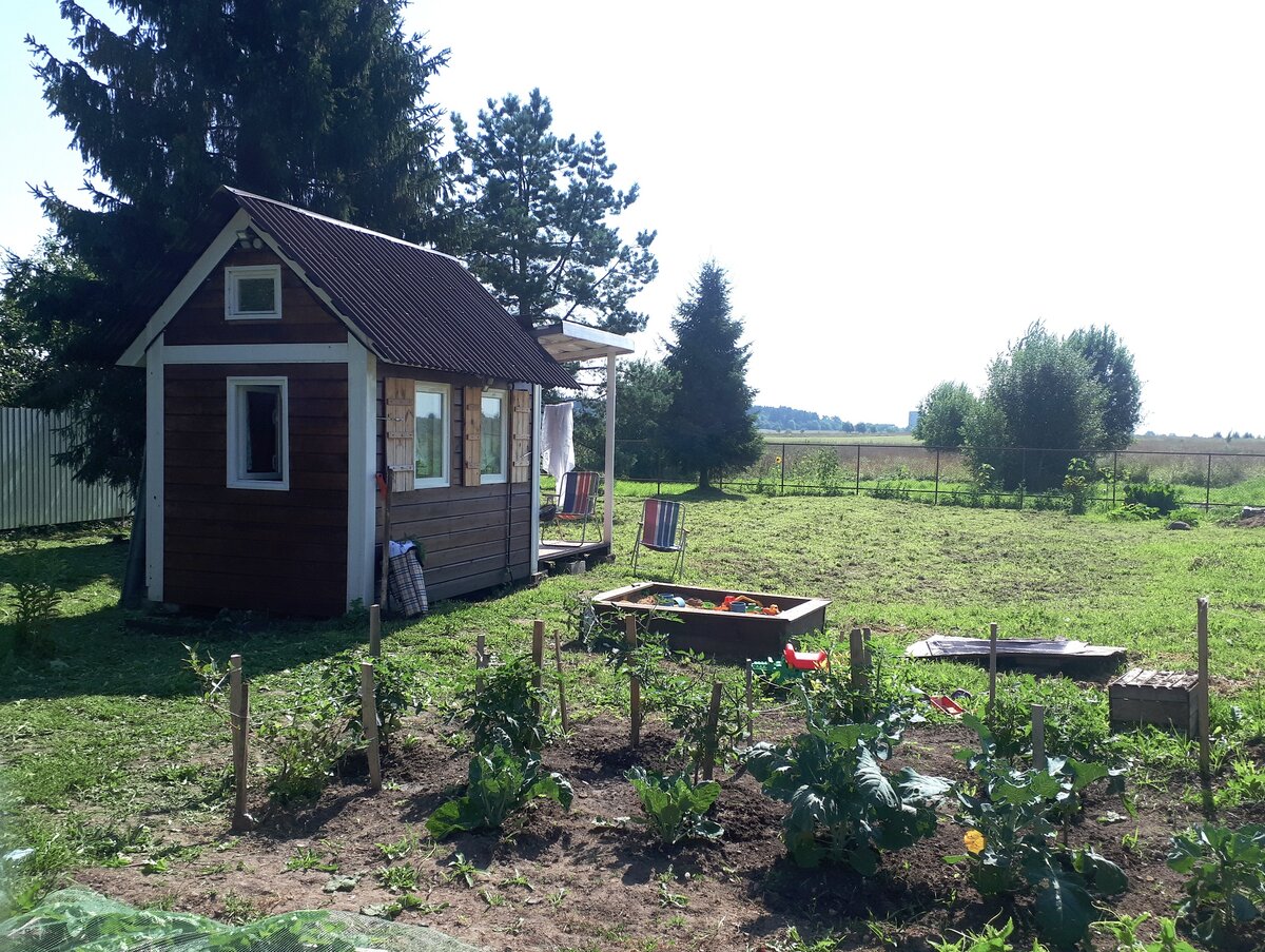 На нашей даче есть только небольшой домик 2х3 метра (вот тут я описала, как мы его строили, переходите по ссылке) Рядом у нас активно строится современный загородный дом со всеми удобствами, но процесс этот небыстрый, а хочется немного цивилизации уже здесь и сейчас, оттого приняли решение соорудить дачный душ. Опять же, нужна теплая вода для полива нашего огорода, идеально будет использовать одну емкость для обеих нужд. Собственно, так часто и делают на дачных участках. Засчет ее прозрачности, легко следить за наполняемостью и опустошением емкости, но есть и свои минусы, вода в белой емкости нагревается не так быстро, как это могло бы быть, будь она черного цвета. Решили уже во время эксплуатации понять для себя: стоит ли ее окрашивать, ведь внешний вид уже не будет так аккуратен. Кто уже использовал подобные емкости, окрашивали ли вы их? Начали установку, подготовили небольшой и простой в исполнении фундамент, знакомые ребята сварили конструкцию и разместили на ней наш куб. Для тог