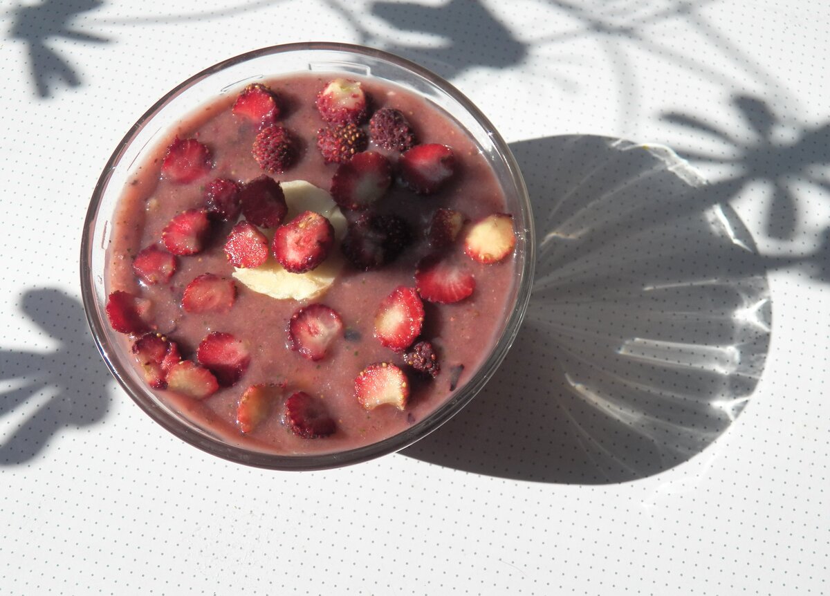 Время луговой клубники - природной витаминки. Уж точно натуральный продукт (без химии, гмо итд). Природный дар. Сделаем ягодный мусс восхитительный на вкус! Попробуйте и согласитесь, что это и действительно, чудо природы. Ингредиенты: 1. Луговая клубника (1 стакан) 2. Банан (2 шт) 3. Мускатный орех (молотый/щепотка) Способ приготовления Вот настало "доброе утро!" Готовим живой вкусный завтрак. Взяли клубнику вместе с оторочками (можно даже не выбирать), положили в ёмкость для миксера, добавили банан и мускатный орех, перебили миксером до однородной массы и наслаждаемся пока мусс свеженький. Хранить его не стоит (максимум на час в холодильник), а лучше приступать к наслаждению сразу. Приятного аппетита! Поделитесь с друзьями и подпишитесь на канал!