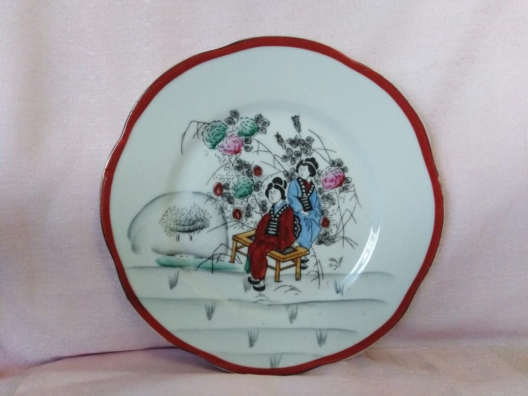 Шинуазри в переводе с французского - китайщина. Ужасно не красивое слово, зато как красиво звучит оригинал. Родиной фарфора считается Китай, и другие страны тщетно пытались найти этот чудесный рецепт многие годы. Появился этот стиль во Франции, в те времена, когда Китай был сказочной и недосягаемой страной. Привозимые оттуда вещи стоили очень дорого и вот появилась такая «обманка» на китайскую жизнь. По сути, это европейское видение Китая и его жизни. Мода - очень капризная дама, и наступает время, когда эта привереда диктует, что и как делать. Вот и эта тарелочка, дань моды на все китайское, отсюда и общее название стиля - «Шинуазри». Моя тарелочка сделана примерно в 1921-1925 гг. на фабрике Волхов, которая принадлежала до 1917 года И. Кузнецову. Качество очень далеко от китайского, не до этого было молодой республике, но вот роспись тарелки… Те времена, когда впервые появился этот стиль, давно прошли, а вот мода на китайщину периодически возвращалась. И доказательство тому моя тар