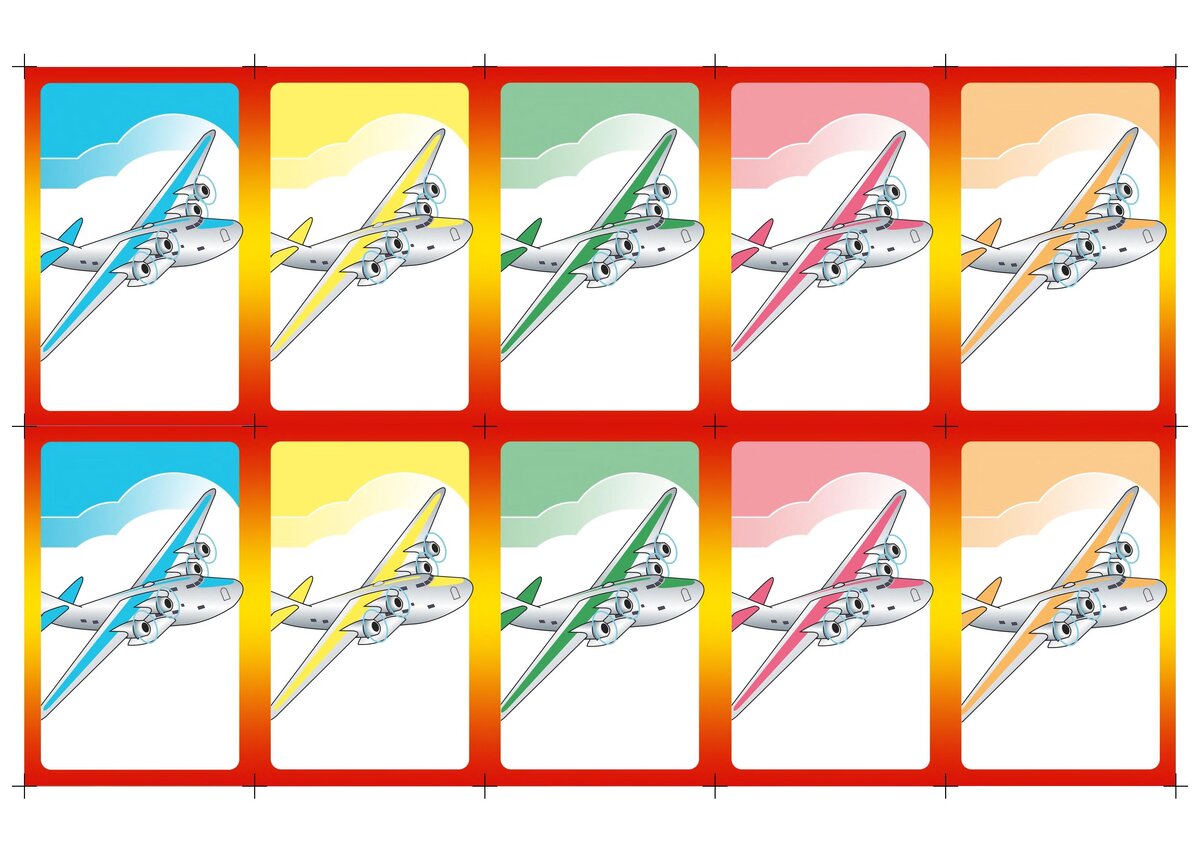 Включает три карточки: две карточки стран и одну карточку с изображением самолёта; при этом все три карточки должны быть одного цвета. Карточка с изображением самолёта располагается между двумя карточками стран.