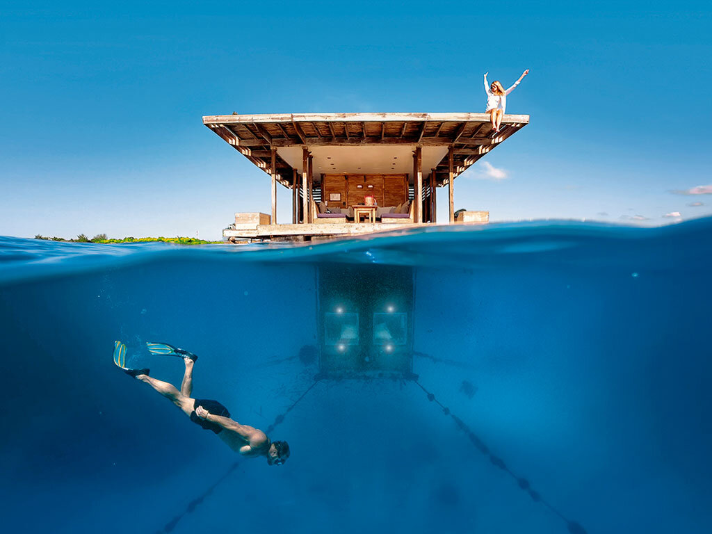Большинство людей едет в отпуск совсем не для того чтобы сидеть в четырех стенах. Когда мы представляем себе номер в отеле, большинство из нас думает просто о обычной комнате. А как вам номер в лесу и с прозрачными стенами? Или комната в пещере? Заинтересованы? Тогда предлагаем вам подборку весьма необычных отелей. 1. The Manta Resort Танзания, остров Пемба. Необычной эту гостиницу делает всего один номер - домик с подводной плавучей комнатой. Он находится в 250 метрах от берега. На верхней части можно загорать днем или любоваться звездами ночью. А в нижней комнате на 360 градусов установлены огромные окна, которые позволят вам наблюдать за жизнью всех подводных обитателей. Проживание в ней обойдется вам 1000 евро в сутки, а в других номерах всего 405 евро, но кому нужны эти обычные номера? 2. Icehotel Швеция, Юккасъярви. Этот отель возводят каждый раз по новому, поэтому комнаты никогда не бывают одинаковыми. А материалом служит лед из реки Турне-Эльв. Посетителям здесь выдают шапки