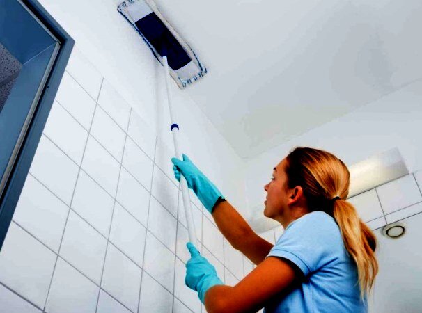 Вроде, и «по потолку не ходим» на кухне, а он грязный и нуждается в периодической чистке. Действительно, на потолке скапливается масса пыли, что часто становится причиной обострения аллергии. Приступая к уборке «залежей» пыли на потолке, необходимо учесть характер потолочного покрытия. От этого зависит выбор инструмента для чистки, а также безопасного метода работы. Выкрашенный водоэмульсионной краской потолок В этом случае лучше воспользоваться пылесосом со специальной насадкой для удаления пыли. Чтобы не оставить царапин на краске, старайтесь сильно не давить на насадку пылесоса. Ведь главная задача – «втянуть» пыль. Можно убрать пыль и с помощью влажной салфетки или чистой тряпки. Ключевое слово «чистая», чтобы пятна с текстиля не оставили следы на потолке. Перед тем, как начать использовать салфетки для уборки, лучше их «протестировать» на малозаметной области. Потолок покрашен масляной краской Такое еще встречается в старых домах. Несмотря на «древность» подобного потолочного пок