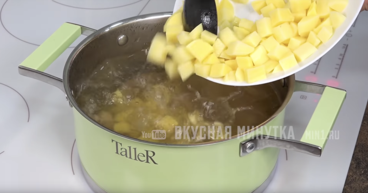 Сегодня готовлю супчик. И я очень хочу, чтобы вы его попробовали. Вкусно! Нет - очень вкусно! Готовится совсем несложно. Бульон я сварила заранее. У меня говяжий, но можно взять любое мясо или приготовить такой суп на овощном бульоне. В кипящий бульон добавляю нарезанный картофель. Солю по вкусу и варю до готовности картофеля. На небольшом количестве растительного масла обжариваю лук до мягкости. Нарезаю баклажаны на вот такие кусочки и отправляю к луку. Если любите острые супы, можно добавить сюда перец чили, нарезанный колечками. Обжариваю баклажаны до полуготовности - примерно 5 минут. Помидоры опускаю на пару минут в кипяток, очищаю от кожицы, нарезаю на небольшие кубики и так же отправляю в сотейник. Тушу 3-4 минуты. Солю и добавляю сметану. Лучше выбирать сметану пожирнее. Перемешиваю, тушу еще пару минут и отставляю. Картофель уже полностью готов. Перекладываю в кастрюлю тушеные овощи, довожу до кипения и варю еще две-три минутки. В самом конце добавляю нарезанную зелень и