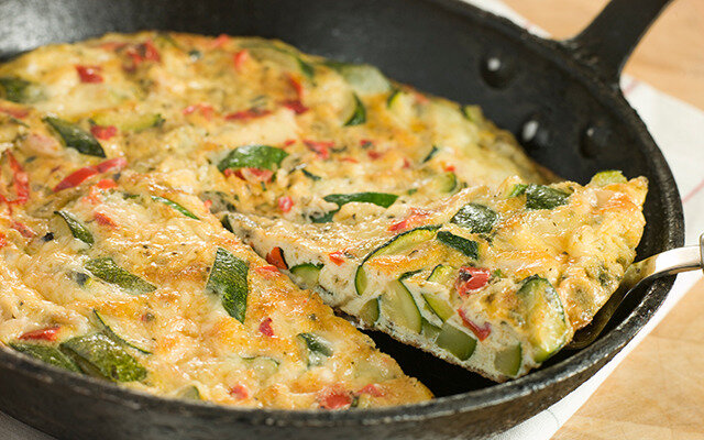Омлет с кабачком и колбасой - это блюдо, которое хорошо подходит для кабачков и трав, таких как эстрагон и тимьян, но вы также можете приготовить его с помидорами, брокколи, спаржей и болгарским перцем — и соединить эти овощи с базиликом, петрушкой или кинзой.