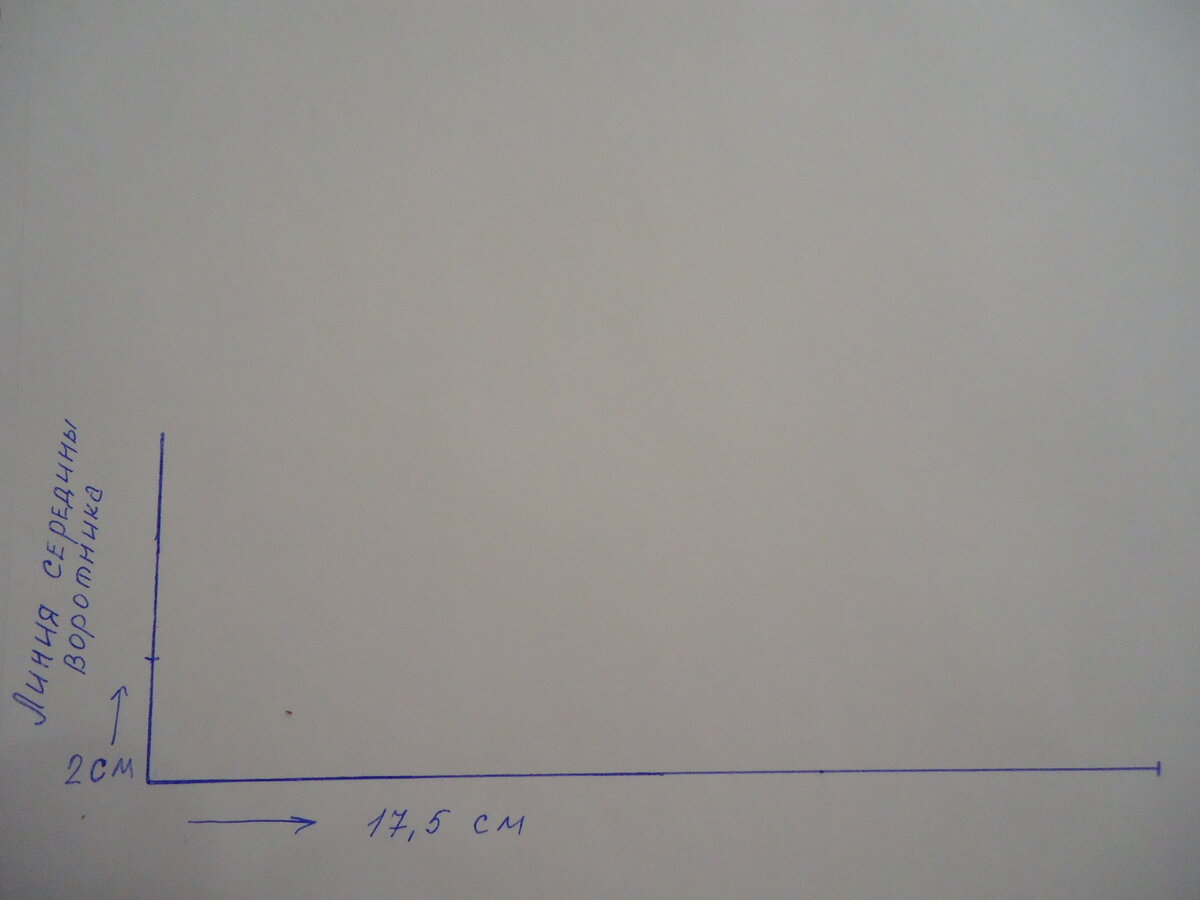 Построить стояче-отложной воротник очень просто, к тому же это можно сделать к любой уже готовой выкройке. для этого необходима одна мерка и снимаем мы ее с выкройки: 1. Строим прямой угол, от этого угла будет иди все построение, вертикальная линия это линия середины воротника. По вертикальной линии вверх откладываем 1,5-2 см. Величина зависит от того что мы хотим получить, чем меньше величина тем больше воротник будет прилегать к шее. При большей величине воротник менее прилегает к шее. Я откладываю 2 см. Вправо по горизонтальной линии откладываем мерку полуобхват горловины плюс 0,5 см 17+0,5 = 17,5 см Две точки соединяем прямой и делим ее на три части. 17,7/3=5,9 Получаем две точки деления, из первой точки проводим перпендикуляр вверх 0,5 см, последний отрезок дели пополам из середины проводим перпендикуляр вниз 0,2 см. Проводим плавную линию соединяя полученные точки и получили линию втачивания воротника. 2. По вертикальной линии середины ворот