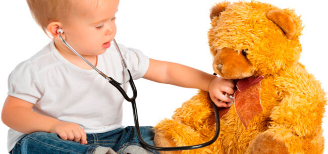 Что понадобится для детской игры в доктора: плюшевая игрушка или куколка, большая плоская книга и игрушечный стетоскоп. Подготовка Скажите малышу, что скоро придется идти к врачу для проверки здоровья. Предварительно почитайте с крохой книгу о врачах (чудесно подойдет «Айболит»). Затем предложите ребенку «порепетировать» поход к врачу. Как играть Наденьте стетоскоп на шею. Предложите малышу такое распределение ролей: вы -