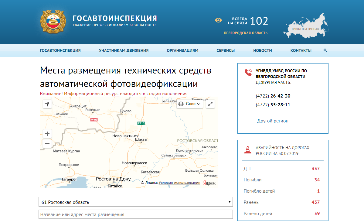 На сайте ГИБДД.РФ появилась карта со всеми камерами на дорогах, Шахты не исключение. "Частных радаров" в списках нет и не будет!