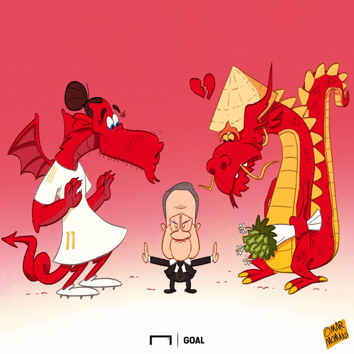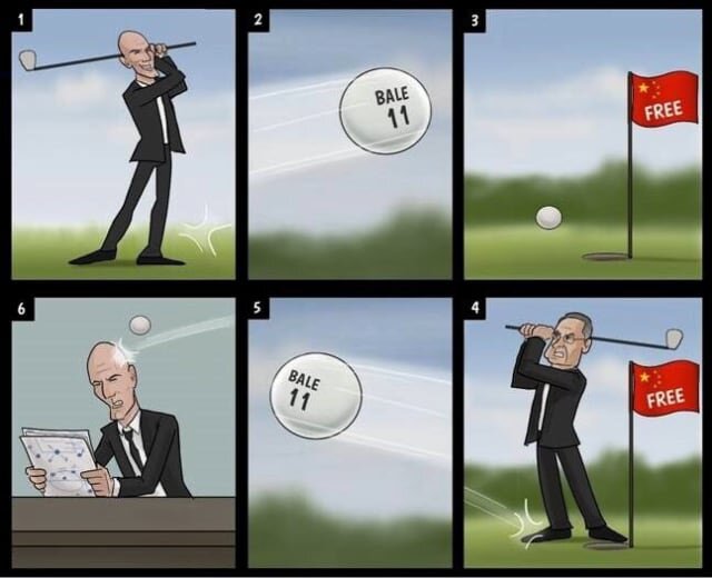 Наверное, многим уже надоели бессмысленные информационные потоки касательно Гарета Бэйла. Он и его агент вкрай достали даже тех, кому до «Реала» нет никакого дела. Не зря от него так жаждет избавиться Зидан. Такое впечатление, что для французского тренера - это приоритетная цель всей предсезонки. Пару дней назад валлиец был очень близок к заключению «вкусного» контракта с китайским «Цзянсу Сунин» на три года с зарплатой в € 22 млн. Бэйлу нет дела до спортивных амбиций, поэтому он согласился. Однако, Флорентино Перес заблокировал данный трансфер, ибо не желал отдавать такого игрока бесплатно. А счастье было так близко… Карикатуристы не могли не пройти мимо подобного известия и создали шаржи со своим виденьем ситуации. Однако, в связи с последним новостями, в «Реал» едет солидное усиление в центр поля. Это не Погба и не Эриксен, а кое-кто покруче. Узнать об этом детальнее вы можете ЗДЕСЬ.