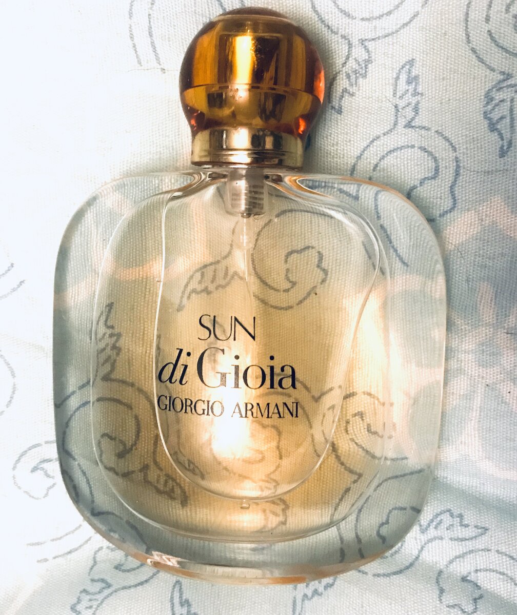 Пришло время рассказать о моем недавнем приобретении, это парфюмированная вода от Giorgio Armani Sun di Gioia. На самом деле из всех брендов парфюмерии именно у Армани мне нравятся практически все ароматы, я их испробовала множество и могу с уверенностью сказать что ни один не разочаровал. Исключение составляют лишь мужские. Однако именно Sun я купила буквально в начале лета, даже не знаю почему только сейчас мой выбор упал на него, но честно признаюсь, я перед покупкой не пользовалась тестером :) Да, вот так я доверяю парфюму от Армани! Начнём с флакона. Он аналогичный как и у всей этой линейки духов - похожий на морской камень, который отражает лучи тропического солнца в соленой воде. Все выглядит очень сдержанно и скромно, вполне в духе бренда. А вот сам аромат для меня стал неожиданностью, причём приятной. Он кардинально отличается от остальных, в нем нет и намёка на свежесть, зато вас окутает облако из цветов и ванили, которое останется с вами на целый день, а то и дольше. Произв