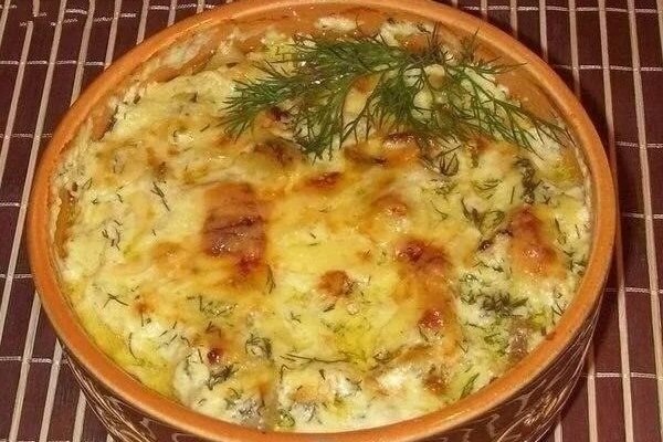 Состав: Куриная грудка – 500 граммов; Белые грибы – 300 граммов; Картофель – 4 крупных клубня; Мука – 100 граммов; Вода – 100 граммов; Сметана – 60 граммов; Полутвердый сыр – 150 граммов; Лук – 2 головки; Чеснок – 3 зубчика; Щепотка соли, любимые специи. Способ приготовления: 1. Хорошо промыть курицу, дать жидкости стечь, порезать кубиками. 2. В миске перемешать муку, соль и специи. Обвалять филе в получившейся смеси. 3. Разогреть сковородку, смазать ее растительным маслом и обжарить курицу до красивой, хрустящей корочки, изредка переворачивая. Добавить мелко нарезанный лук и грибы, накрыть крышкой и томить около 30 минут. 4. Приготовить заливку: соединить сметану с водой и измельченным чесноком. 5. Клубни картофеля порезать уложить на дно горшочков или формы для запекания. Сверху выложить мясо с грибами, добавить немного сливочного масла, залить соусом и посыпать тертым сыром. 6. Разогреть духовой шкаф до 200 градусов и поместить в нее блюдо на 1 час. Приятного аппетита! Подписывайтес