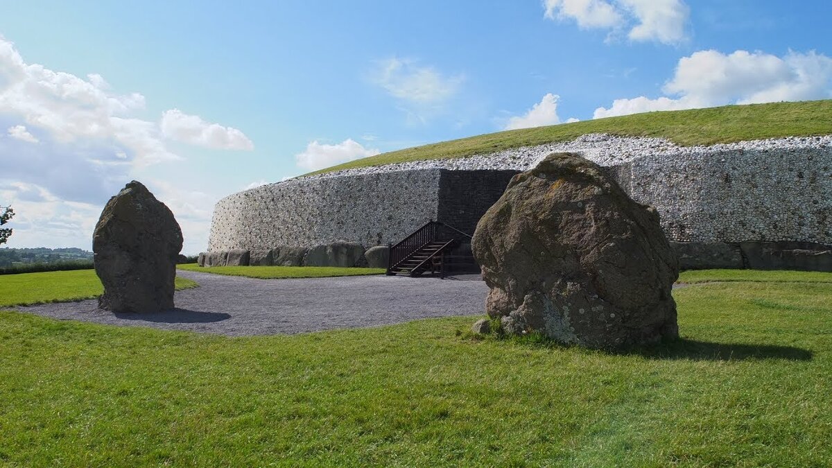 Ученые предполагают, что его построили за 5000 лет до н.э. и в отличии от похожих склепов, расположенных по всей земле он самый огромный. Он построен из 200 тысяч камней, которые покрыты галькой из кварца. Случай обнаружения его, весьма интересный. Раньше, считалось что эта просто возвышенность, которая образовалась сама по себе как холм и сюда очень часто приходили молодые парочки, так сказать романтическое место. Так вот в одной из таких прогулок, одна из пар провалилась и оказалась в коридоре, который уходил под землю. В 1962 году, ученые археологи занялись подробным изучением данного места и обнаруженное было за гранью понимания. В конце тоннеля, они обнаружили погребальную камеру, стены которой были украшены странными узорами, не поддающимися растолкованию. В ней они обнаружили тела пятерых человек, только тела и больше ничего, т.е. без каких-либо знаков. В те времена было принято хоронить людей с предметами, которые на том свете укажут на их статус тем более если были бога