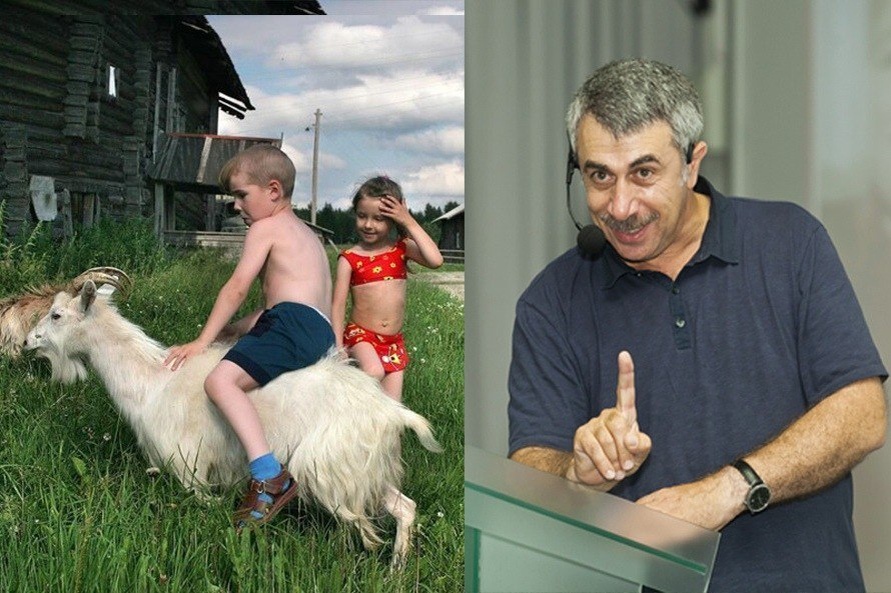Ребенок должен отдохнуть от контактов с множеством людей, от городского воздуха, от хлорированной воды и бытовой химии. В подавляющем большинстве случаев отдых «на морях» не имеет к оздоровлению часто болеющего ребенка никакого отношения, поскольку большинство вредных факторов сохраняется плюс добавляется общественное питание и, как правило, худшие, в сравнении с домашними, жилищные условия. Идеальный отдых часто болеющего ребенка выглядит так (важно каждое слово): — лето в деревне — надувной бассейн с колодезной водой, рядом куча песка — форма одежды — трусы, босиком — ограничение на использование мыла — кормить только тогда, когда закричит: «Мама, я тебя съем!». Грязный голый ребенок, который скачет из воды в песок, выпрашивает еду, дышит свежим воздухом и не контактирует с множеством людей за 3−4 недели восстанавливает иммунитет, поврежденный городской жизнью.