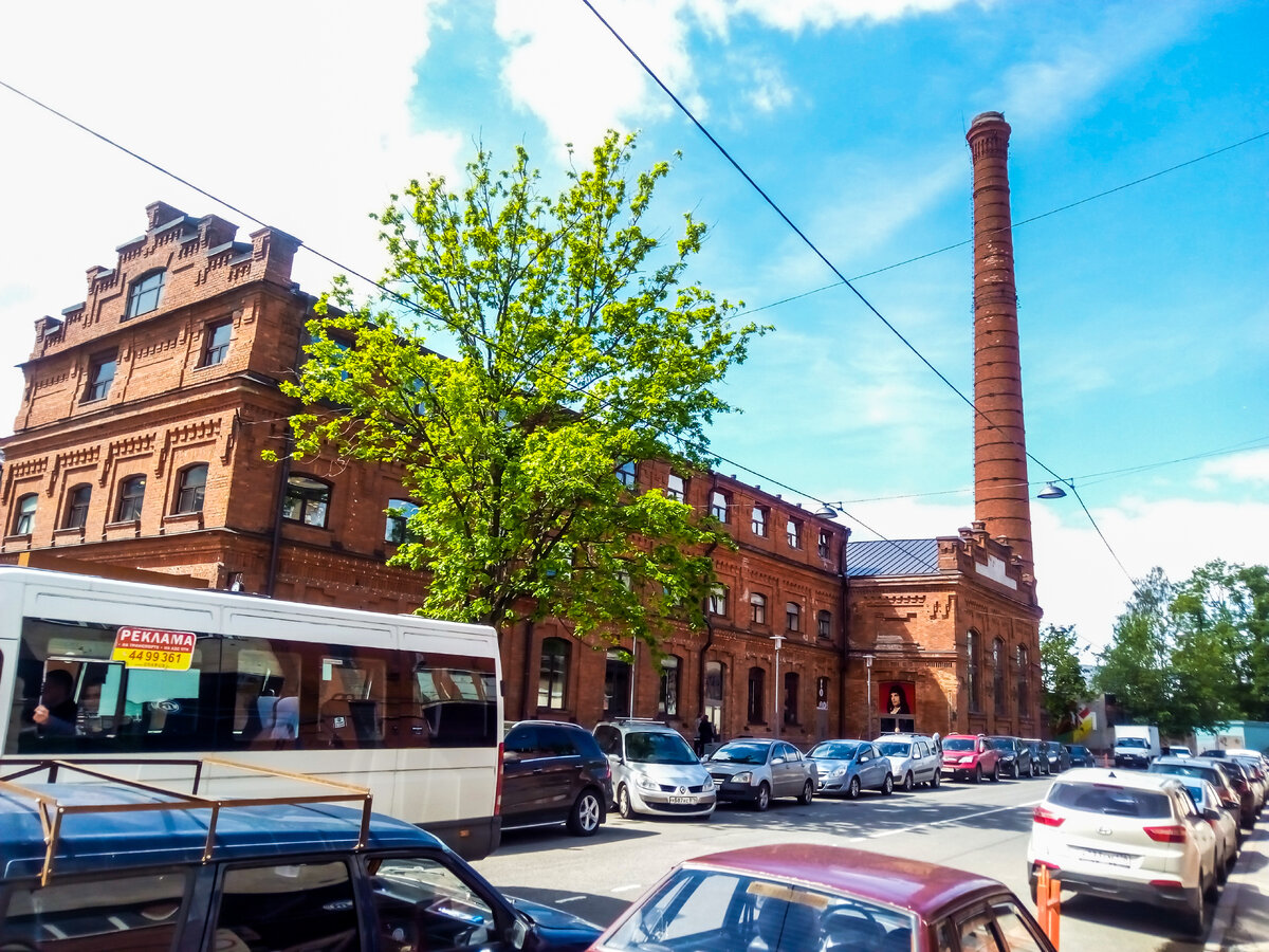 Нашли мы это интересное место чисто случайно, когда гуляли по Васильевскому острову в Санкт-Петербурге. Вначале мы увидели высокую кирпичную трубу, подошли поближе, чтобы сделать ее фото, и увидели вполне неплохое место для прогулок, тем более, можно было подойти к берегу. Что мы, конечно же, и сделали. Вот как выглядит это здание с трубой. Раньше там находилось управление заводом и котельная. Сейчас - это выставочный зал. Сфотографировав это необычное интересное здание, мы увидели проход в сторону побережья. Стоял автомобиль, с которого торговали кофе, были красивые декоративные лавочки. Справа - расположилась кафешка. Так почему бы нам не сходить туда? Рядом с автомобилем-кофейней мы увидели старую лодку. По прямому назначению она, скорее всего, давно уже не использовалась. Но отлично использовалась как декорация этого места. А это большое здание - бывший цех завода Севкабель. Сейчас там находится общественное пространство, то есть, любой желающий может пройти на его территорию и про