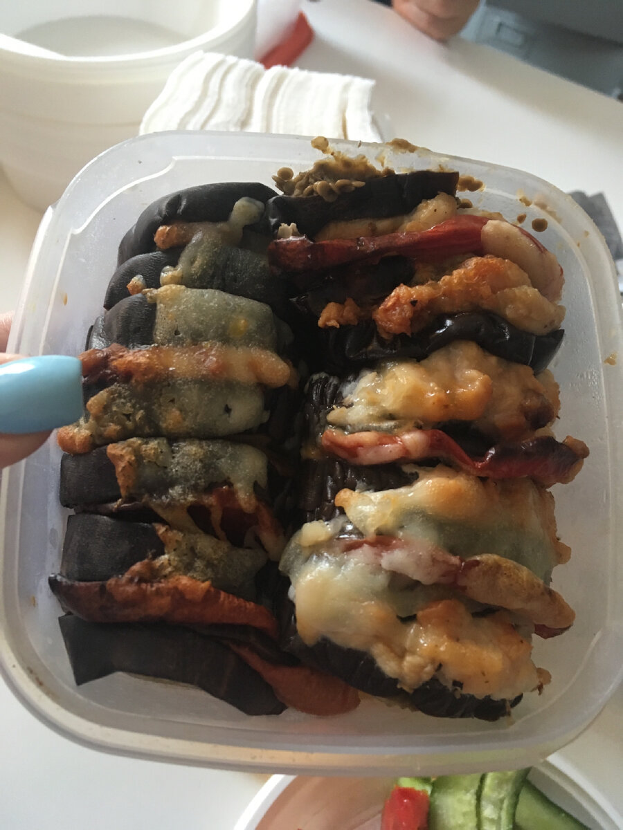 Давно уже хотела приготовить гармошку из баклажанов и наконец сделала это! Вы пробовали такое блюдо? Ингредиентов мало: Начнем с курицы. Если у вас грудка на косточке, то отделите ее и порежьте на маленькие кусочки. Можно также пропустить через мясорубку, но мне больше нравится именно порезанная. Теперь перейдём к баклажанам. Баклажаны разрежьте поперёк на 2 части (если баклажаны длинные, то можно и на 3). В каждой части надо делать надрезы, но не до самого конца. Расстояние между надрезами где-то 5 миллиметров. Теперь не очень толсто нарезаем помидоры кружочками. Для некоторых баклажанов кружочки надо будет поделить на 2 части, чтобы они сильно не выпирали. Теперь грудку солим и приправляем специями. И начинаем собирать нашу гармошку :) Чередуем курица/помидор/курица/помидор. Сильно длинные гармошки не стоит делать, а то они будут разваливаться. Когда все баклажаны начинили, подсолите их немного, чтобы соль была и на баклажанах, а не только на курице. Ставим в разогретую до 200 гра
