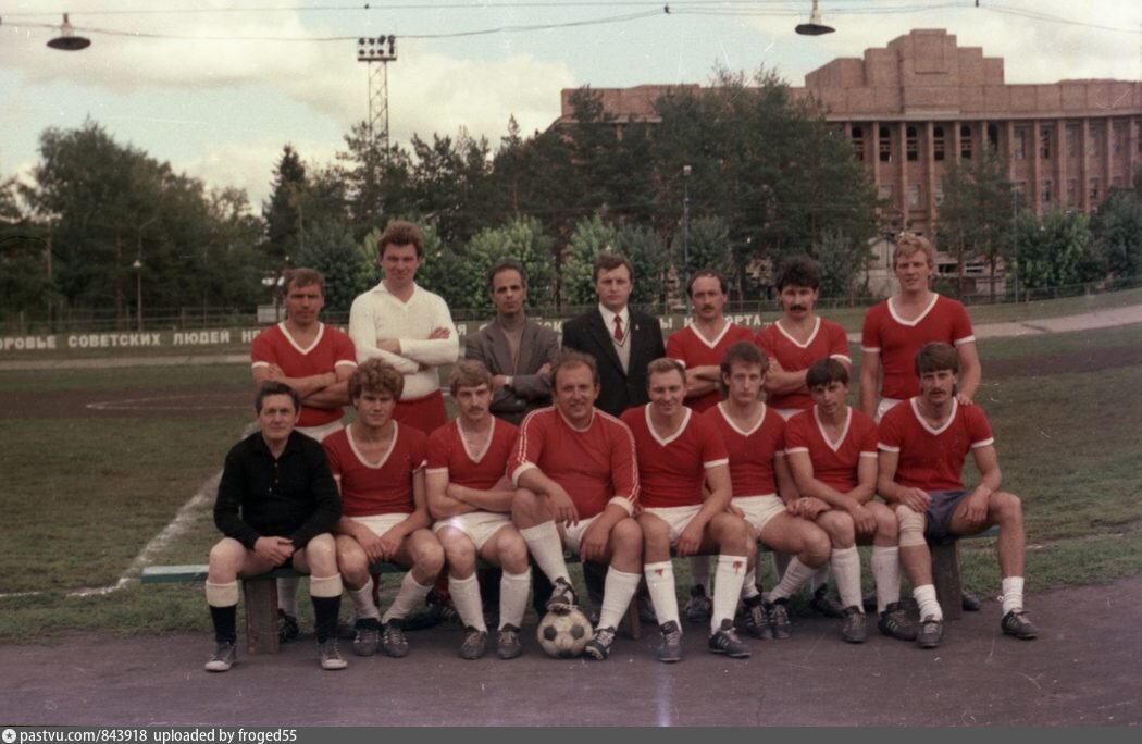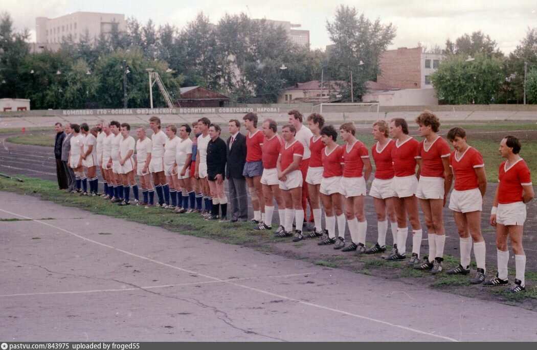 Чем они интересны помимо футболистов? А тем, что на заднем плане каждого мы видим главную примету СССР времен развитого социализма - долгострои. Причем не важно, что это было, например, в Омске: аэропорт, Торговый центр, Музыкальный театр, Ледовый дворец или вот как на фото новое здание облсовета (на 1-м фото) или здание областной научной библиотеки им Пушкина (вдали на втором).