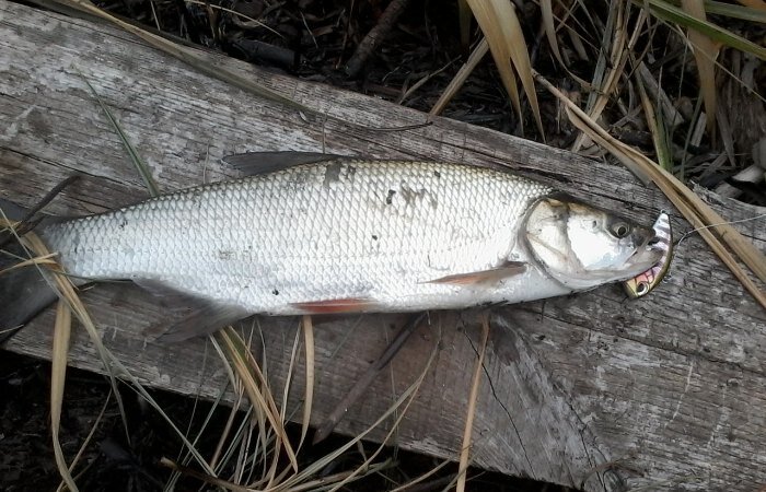 Раздел: Летняя рыбалка Однажды мне пришлось наблюдать с высокого берега как стая жереха окружила косяк верховодки и медленно, наслаждаясь охотой, с ним расправлялась. Заметьте, не все наскоком набросились на малька, а поочередно. Другие, в настоящее время, плавали кругом косяком, не давая верховодке расплыться в разные стороны, а наоборот сбивали ее в груду. Засмотревшись на это я даже забыл что у меня в руках спиннинг. Длилось это действо минут 20, аж пока косяк верховодки совсем не съест, а жерехи, утоливший свой аппетит, исчезли в глубине Днестра. После увиденного я с уважением отношусь к этой рыбе. Мне кажется, что у нее есть интеллект и социальные отношения в стае. Я уже упоминал, что есть разные тактики охоты (в зависимости от температуры воды, поры года, уровня воды, ее прозрачности и так д.). Собираясь охотиться на жереха, надо сначала выяснить как охотиться сам жерех. Не спешите сразу закинуть приманку, прийти на берег. Сначала прислушивайтесь ко всплескам на реке и присмотрит