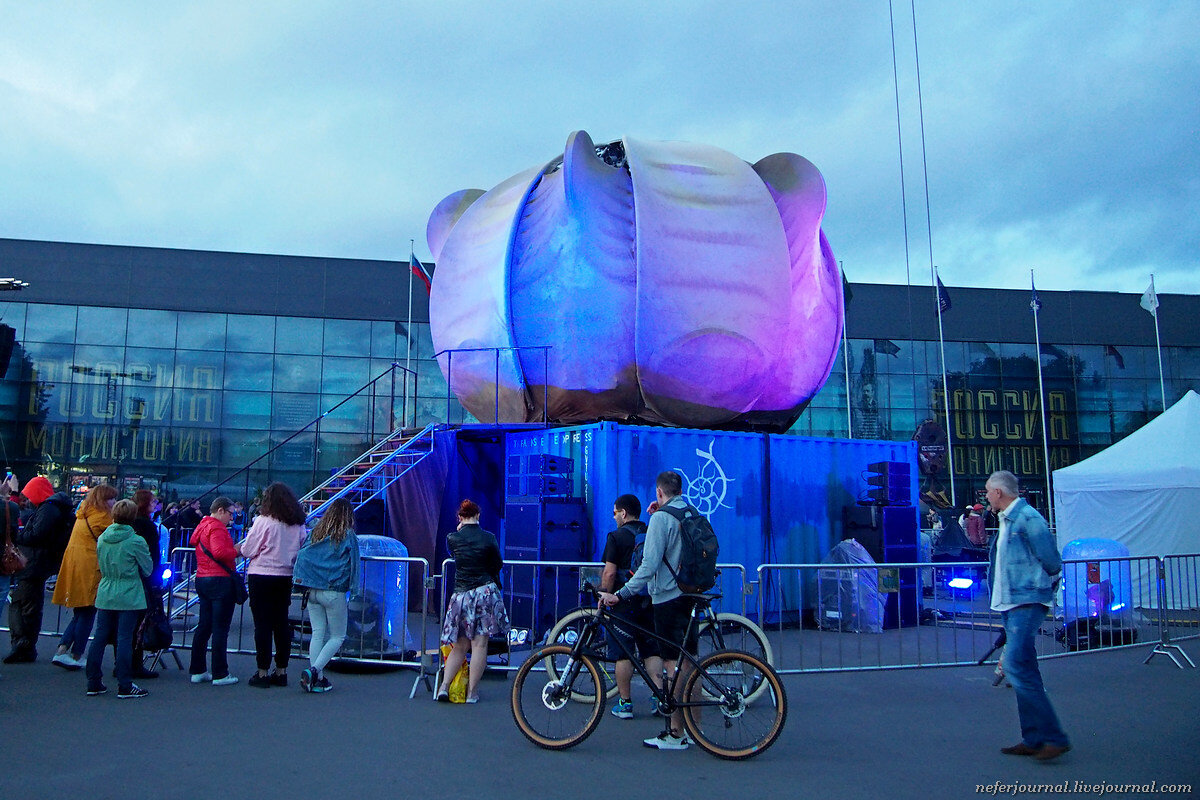 Главным объектом шоу была вот такая штуковина. Она явно должна разворачиваться или раскладываться. Штуковина действительно раскрылась, как гигантский экзотический цветок. Но кто ж знал, что верхняя ее часть еще и летает.