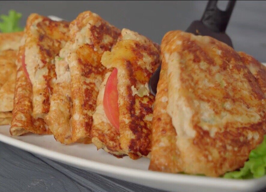ингредиенты: В миску положите марлю сложенную в 4 раза. Теперь сюда натрите на терке 400 гр. кабачка. Соберите края в мешочек и отожмите сок. Выложите кабачок в глубокую миску. Туда же добавьте 200 гр. мясного фарша, разбейте 4 яйца. Натрите два зубчика чеснока. Добавьте чайную ложку паприки и пол столовой ложки соли. Перемешайте все хорошенько. На плите нагрейте антипригарную сковороду. Выложите две-три столовые ложки кабачковой массы, аккуратно сформируйте небольшой круг. Жарьте на среднем огне. Нужно чтобы влага выпарилась и верх схватился. Теперь на одну сторону кладите два кусочка сыра. Аккуратно накройте второй половиной и положите кружочек помидора на одну сторону. Накройте сверху, получится треугольник с кармашками. Закройте крышкой и подержите 30-40 секунд. Затем переверните и снова накройте крышкой, подержите под паром еще около минуты. Получилось очень вкусно! Если понравился рецепт, поставьте лайк. Так же можете подписаться на наши рецепты. Не подписчики, а