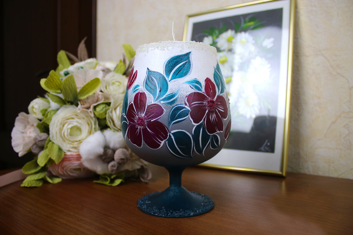 Роспись подсвечника акриловыми красками. Как легко нарисовать цветы?
