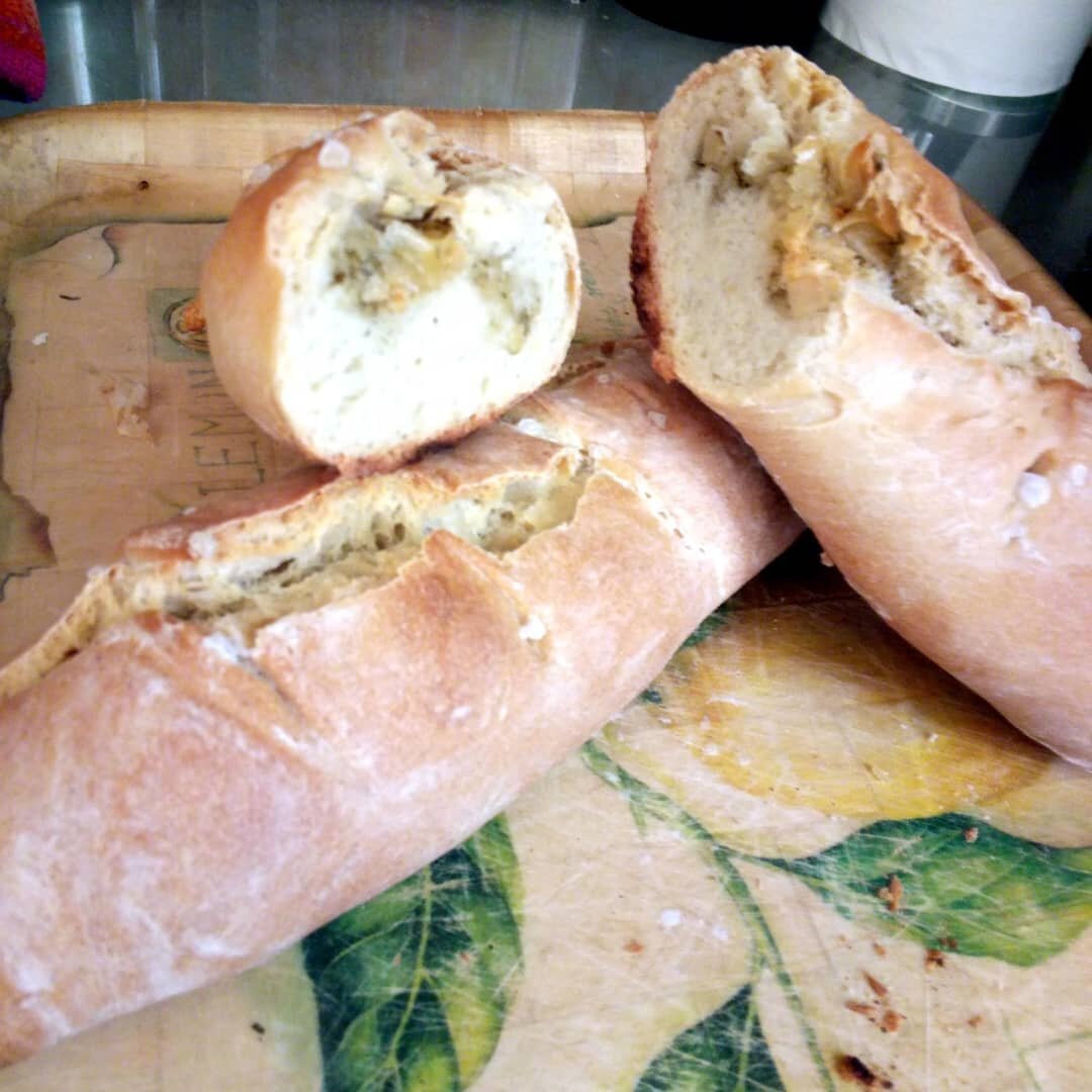 Хлеб багет(3 вида) с чесноком,с сыром,с грибами ииоливками.