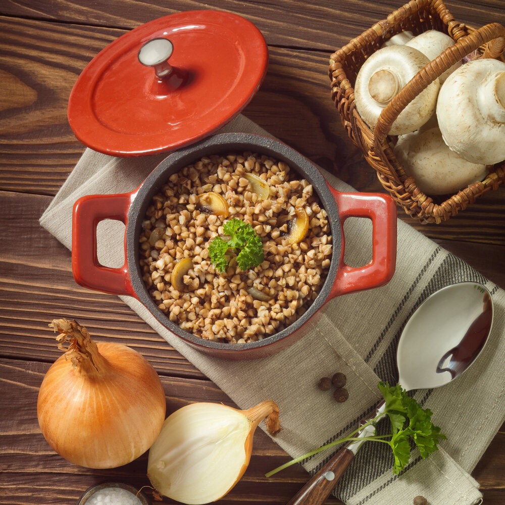 8. Готовую гречку добавить к грибам и луку, можно немного обжарить. Посмотрите наш блог со статьями и рецептами! Вот, например, статья про лучшие диеты для похудения, а вот -- про то, как облегчить свой рацион питания. Готово! Кстати, мы будем рады прочесть комментарии под этим рецептом. Так что готовьте и оставляйте отзыв! Приятного вам аппетита! Кроме того, еще больше разнообразных рецептов здорового питания вы можете найти на нашем сайте: Racionika.ru.