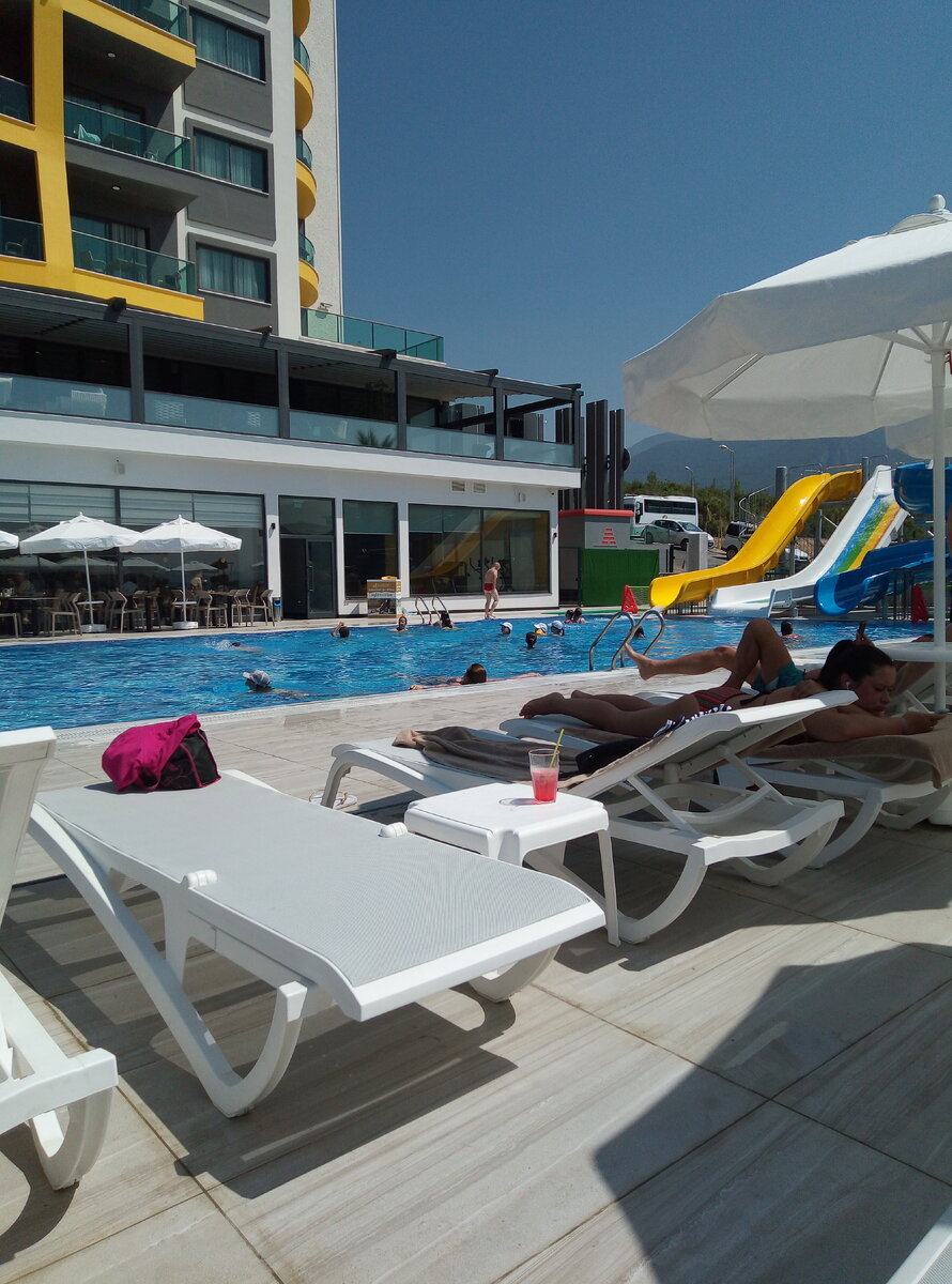 В мае 2019 в районе Кестель открылся новый отель Campushill. Номера вполне приличные, но вот лифты работают с перебоями. Возможно сейчас уже проблема решена. В бассейне 3 горки, которые работают с 9 до 17.00, питание "все включено", на пляже алкогольные напитки только за отдельную плату. Пляж находится в 4 км от отеля, пешком дойти нереально, отвозит автобус каждый час. Так выглядит кафе отеля Территории для прогулок нет. Рядом с отелем остановка, за 20 минут можно добраться до центра Алании на 101 или 202 автобусе. Заявлено 5*, но все-таки отель не дотягивает по анимации и обслуживанию. Персонала не хватает, а в ресторане очереди.