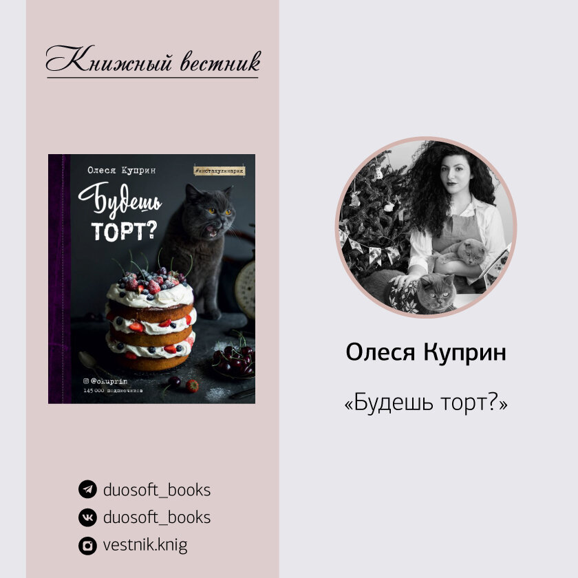 Жанр: инстакулинария | Год: 2017 Олеся Куприн - это фотограф, блогер, кулинар, автор книг и хозяйка двух прекрасных котиков. Последние помогают ей во всем и присутствуют практически на каждой фотографии. Это издание больше не про почитать, а про посмотреть, и не зря его относят к жанру инстакулинария.
