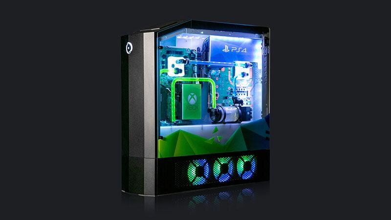 Самый быстрый, самый простой и ужасно дорогой способ покончить с консольными войнами-просто засунуть все основные игровые платформы, включая мощный игровой ПК, в одну коробку. И система под названием Big O именно это и делает - компания Origin PC расположила внутри корпуса мощное железо для ПК, Xbox X, PS4 PRO и Nintendo Switch. Как бы впечатляющие это ни выглядело и ни звучало, вы не сможете это купить-система создана в качестве эффектного празднования 10-летия компании Origin PC. К тому же стоит данная система безумных денег - PS4 PRO Xbox One X оснащены жидкостным охлаждением и новенькими SSD на 2ТБ, заменяющимм стандартные накопители. Железо для ПК следующее-процессор i9-9900k, видеокарта Nvidia Titan RTX, 64 ГБ оперативной памяти и 14 ТБ HDD.
