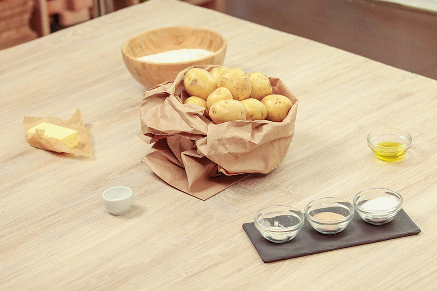 РЕЦЕПТ КАРТОФЕЛЬНОГО ХЛЕБА Рецепт картофельного хлеба Время приготовления: 1 час 20 минут! Ингредиенты: Картофель 200г — 4 рубля Масло сливочное 75г — 42 рубля Мука 400г — 15 рублей Сахар 50г — 2 рубля Разрыхлитель теста 10г — 10 рублей Дрожжи 14г — 10 рублей Масло оливковое 15мл — 17 рублей Сервировка «Брускетта»: Помидор 1шт Чеснок 1 зубчик Базилик свежий 2 веточки Перец черный по вкусу Масло оливковое 40мл Соль по вкусу Приготовление: Брускетта: ГОТОВО ПРИЯТНО АППЕТИТА!!¡!!!