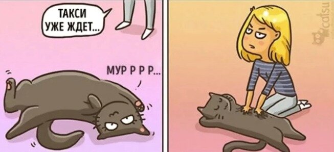 Жизнь с кошкой полна смешных и весёлых моментов. Но не надо забывать, что ещё и ответственность за своего домашнего питомца. Всегда кормите его и ухаживаете за ним. Простая девушка нарисовала для нас несколько интересных и забавных комиксов, которые вам скорей всего понравятся. Она очень старалась показать жизнь с кототом такую, какая она есть. Обиделась Если на ваших коленках лежит кошка, то любое лишнее движение может его обидеть. И он уйдёт от вас, поэтому будьте максимально осторожны, когда котик спит на вас. Пугает Кошки могут видеть то, чего мы увидеть не способны. С одной стороны нам кажется, что там ничего страшного нет, но если это перед сном, то наша фантазия сделает всё за нам. Логика Иногда я просто не понимаю этих кошек. Они с таким усердие выпрашивают у вас еду на кухне, а когда вы подаёте её, то она просто уходит. Независимая кошка Кошки очень часто строят из себя самостоятельных животных, но когда дело доходит до коврика и когтей, то тут ей уже понадобится чья-либо по