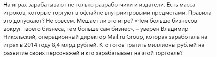 В MMORPG последних лет убита внутри игровая экономика, разумеется игроки пытаются хоть как-то наладить внешнюю. Все, что вы покупаете за реальные деньги - может передаваться другим игрокам, а вот то, что вы добыли в игре, как правило в большинстве случаев привязано! Это ли честная экономика?) Так разработчики радеют за баланс? Да плевать они на него хотели, им важно только набить шекелями свои бездонные карманы.