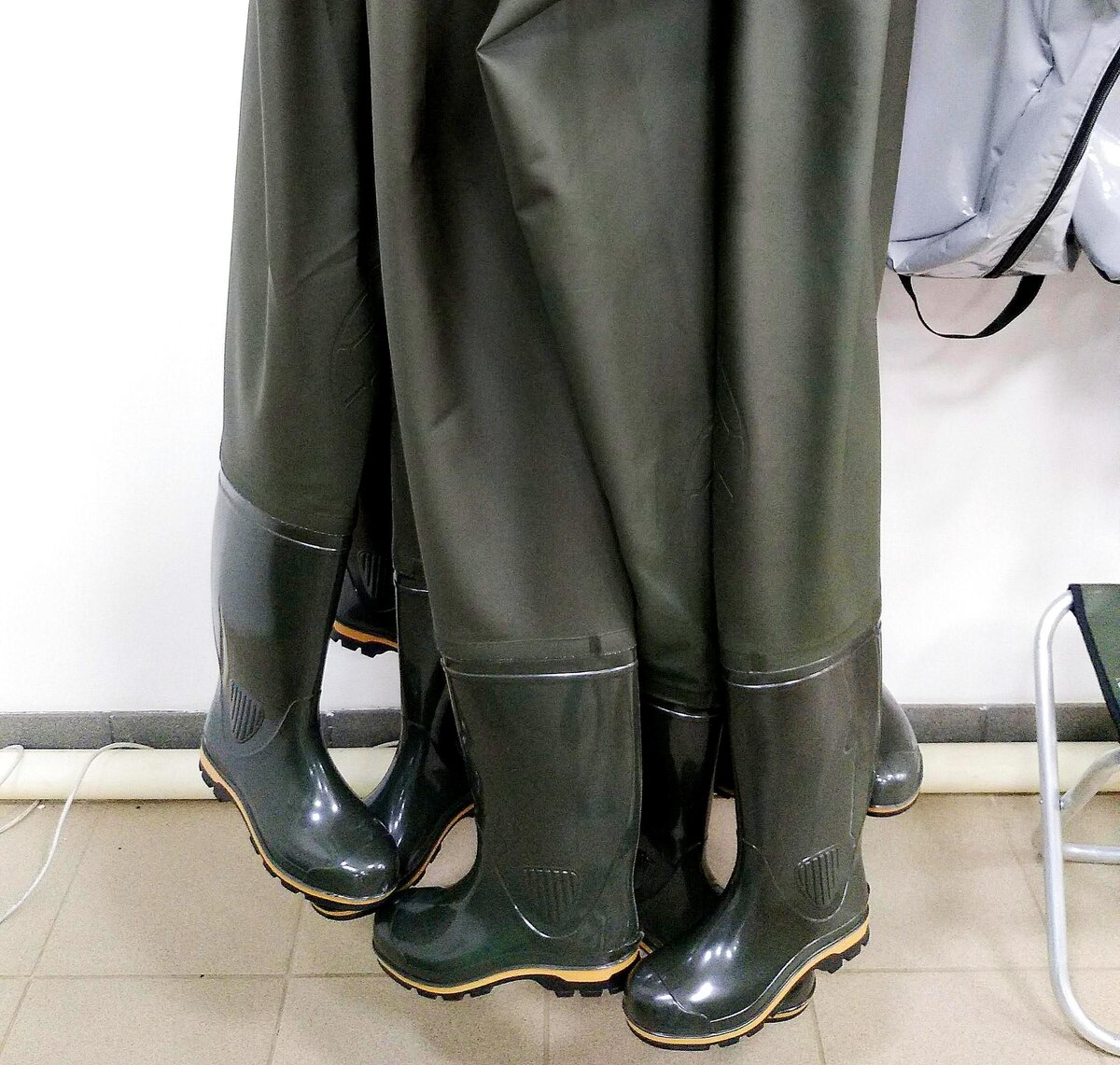 Затем дал им просохнуть и вуаля! Все как на ладони сразу стало видно где прохудилась его экипировка. Можно просто в сухие сапоги очень аккуратно налить воды через шланг и сразу все будет видно.