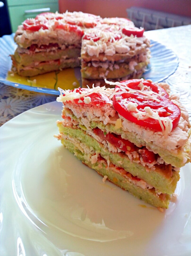 Коржи для торта делаем из кабачков, специй, яиц и муки.