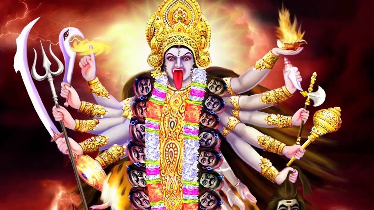 Жившей в Индии в середине 19 века некой Рани Рашмони однажды явилась богиня Кали, наказав соорудить статую своего образа в храме, а затем молиться ей. Чудесное явление произошло ночью, когда Рашмони спала. Было ли это сном, явью ли, но вдова Рани рьяно занялась строительством храма около Калькутты, так как была богатой женщиной. Через 8 лет храм был построен, а посередине его стояла базальтовая статуя богини Кали. На шее богини было ожерелье из человеческих черепов и гирлянды из жемчуга. Четырёхрукая Кали держала отрубленную голову и саблю (в 2-х левых конечностях). Шива и его «жена» Кали своей божественной энергией приносили скорее зло, чем добро. Особенно усердствовала в этом богиня. В Индии она называлась «чёрной» из-за этого. Статуя Кали в храме попирает ногами безмятежно лежащего супруга Шиву (тоже в виде статуи). Одна нога Кали нажимает на грудь, другая – на место ниже паха индийского бога. С открытием храма возле Калькутты в него начали заходить брамины. Одним из них был Гададх