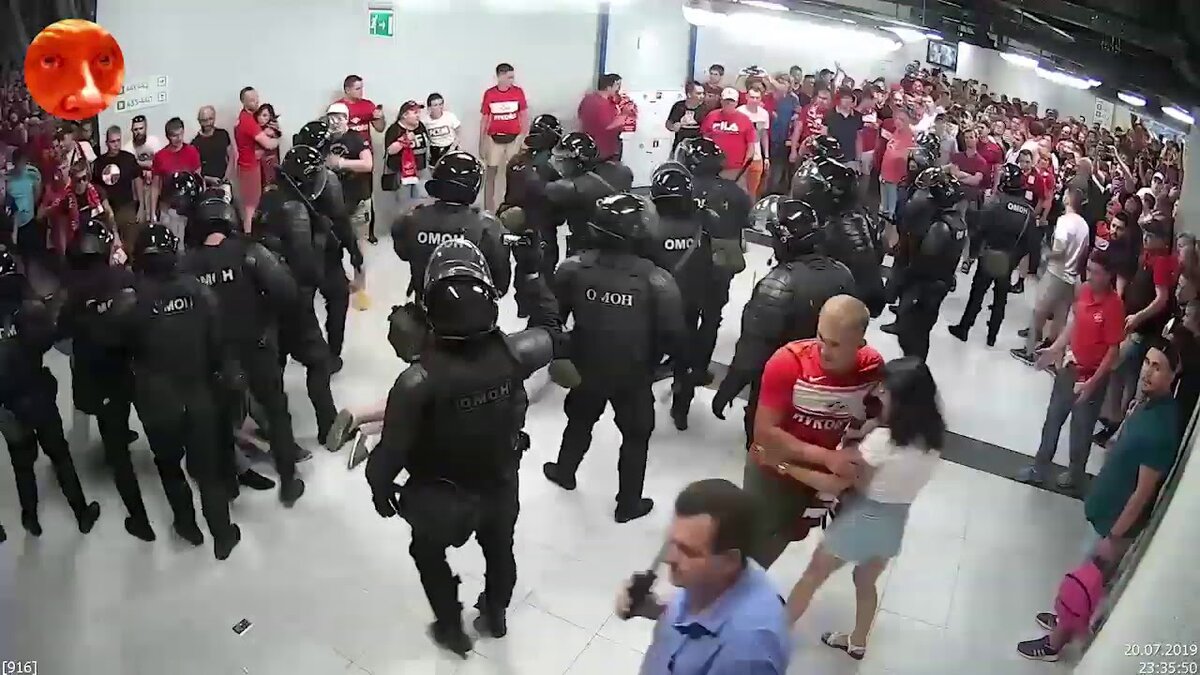 В популярном телеграм-канале «Мутко против» было опубликовано видео, как омоновцы избивают болельщиков «Спартака» после окончания игры с «Ростовом» (2:2). В ролики видно, что ОМОн резко врываются в толпу болельщиков и начинает их расталкивать. Болельщики сразу отходят назад, несколько людей при такой давке падают на пол, их начинают без разбора бить дубинками, после этого они перекрывает выход. Хронология событий Фанатов «Спартака» 45 минут не выпускали со стадиона (служба безопасности искала болельщиков которые жгли пиротехнику во время матча), они поругались со стюардами (многие из которых были в масках). Уже после того, как инцидент прекратился, ОМОН начал врываться в большую толпу фанатов, болельщиков начали грубо выталкивать. Через некоторое время их начали выпускать с арены. • Полиция задержала 8 болельщиков «Спартака», но затем их отпустила. Сотрудники полиции объяснили задержание тем, что фанаты устроили конфликт со стюардом. • Футбольный клуб «Ростов» заявил что к работе стюа