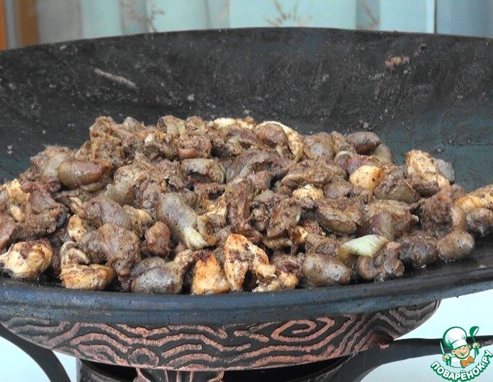 Ингредиенты для «Ассорти по-иерусалимски»: Время приготовления: 60 минут Количество порций: 10 общем, ничего хитрого - сначала режем компоненты, потом жарим. Кстати, если в хозяйстве нет саджа - можно использовать обычную сковороду, главное, чтобы она была большого диаметра.