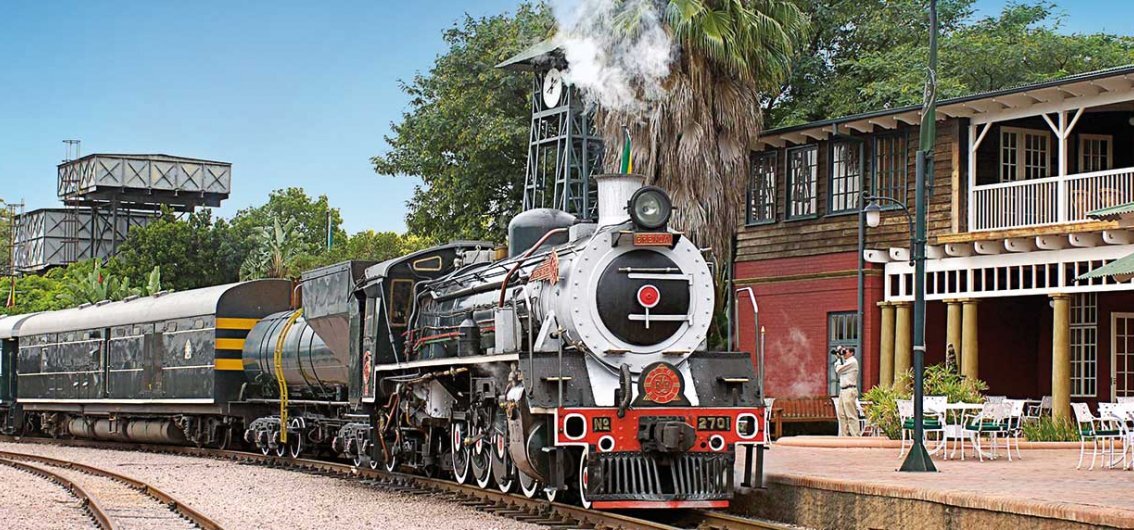 Ровос Рейл. Ровос Рейл предлагает своим счастливым пассажирам не только поездку через всю Африку,но и путешествие во времени! Комфорт,рельсы и элегантность! Роскошь этого поезда настолько гармонична,что кажется,будто таким он был создан,но это не так. Большинство из его 75 вагонов были изготовлены в Европе и перевезены в Южную Африку для членов королевской семьи в начале прошлого века. Роан Вос скупил их в различных уголках мира,отреставрировал,оборудовал с богатством и элегантностью и запустил в эксплуатацию 29 апр. 1989 года. В каждом составе 13 вагонов, и он перевозит максимум 72 пассажира. Пассажиры путешествуют в купе площадью от 7,11 до 16 кв. метров,с кондиционером; при каждом купе есть комфортабельная ванная комната; пассажиры могут 24 часа в сутки пользоваться услугами персонала в своём купе. Поезд оформлен в роскошном викторианском стиле (англ. стиле конца 19 века). Пассажиры,пересекающие Африку и посещая достопримечательности,могут находиться в пути почти месяц. Канадец. Эт