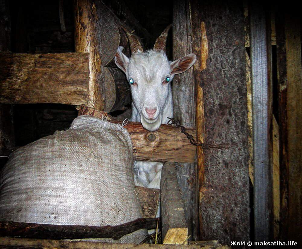 Трое суток Рамазон сидел взаперти. Нет, он ни в чём не провинился, кроме того, что он есть тот, кто есть. А именно — неожиданно пришла в «охоту» коза Козявка, вот и пришлось «жениха» изолировать. Рано им ещё «свадьбы» играть. Рамазону четыре месяца, но за тот день он где-то обзавёлся настоящим взрослым козлиным одеколоном, что теперь пройти мимо и не зажать нос — сойдёт за небольшой подвиг. Все трое суток Рамазон детским голоском сироты жалобно верещал в своей темнице, просил выпустить его: «Я по мамке скучаю! Что же вы творите, ироды?!» И то правда — Рамазон до сих пор сосёт мамкино молоко. Поэтому, конечно, когда Козявка угомонилась и я его выпустил, то ожидал, что Рамазон первым же делом бросится к мамке, ждущей его с тугим выменем. Но нет — на мамку он и внимания не обратил. Вместо этого мигом принялся исследовать Марточку — вдруг она теперь «гуляет»? При этом полностью соблюдал традиционный репертуар — солидно фыркал и задирал губу. Как говорят наши бабы — «устроился гинекологом»
