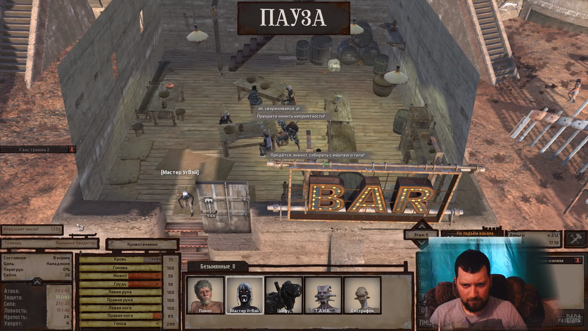 Всем добра с вами Борода. И так друзья наше путешествие во вселенной Kenshi продолжается. В прошлый раз мы с вами начали разрабатывать полезные ископаемые за которые мы смогли купить себе немного еды и хренового снаряжения. Пока наш отряд под предводительством Мастера УгВея упорно трудился на железных и медных жилах дабы стать успешными предпринимателями и заработать кучу денег, на город в котором у нас импровизированная база напали бандиты. Это были пыльные бандиты, далеко не самые плохие войны в кенши, пока наши войны не подняли свои навыки на мастерские уровни сражаться с такими врагами было довольно тяжело. Но вместе с стражниками Ниндзя Торговцев мы приняли бой. Сражение длилось несколько часов пока наш враг не отступил потеряв своего лидера. Весь город был усыпан трупами бандитов, наши войны перевязали свои раны и отправились добывать руду для развития нашего отряда. Мы убили главаря этой шайки бандитов и забрали у него новенькие доспехи довольно хорошего для начала игры каче