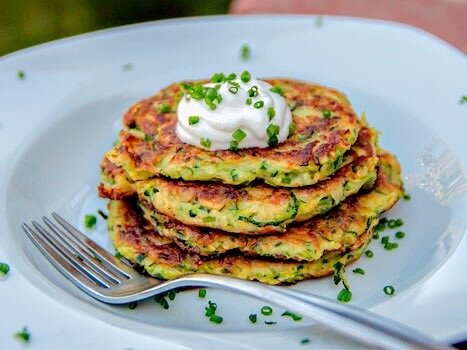 Требуемые продукты: - кабачки, 400 гр. - зеленый лук, 1/4 чашки. - мука, 0.5 чашки. - молотый черный перец, 1/4 ч.л. - соль, 1/4 ч.л. - яйцо, 1 шт. - разрыхлитель, 0.5 ч.л. - оливковое масло. Процесс изготовления: В первую очередь будем разбираться с кабачками. Их нужно помыть, после чего срезать кончики. Дальше все необходимо перетереть через крупную тёрку. Дальше возьмите большую миску, уложите туда всё, что только что натёрли, посолите (1 ч.л.), хорошенько перемешайте. Уберите чашку в сторону, дайте настояться в течение 10 минут. По прошествии этого времени кабачки нужно выжмать, тем самым вы уберёте излишки воды. Посолите ещё раз (1/4 ч.л.), перемешайте. Дальше нужно мелко порезать зелёный лук, яйцо немного взбить вилкой, взять черный перец и добавить всё это к кабачкам. Хорошенько всё перемешайте. Отдельно возьмите небольшую тарелку, где перемешайте муку с разрыхлителем, после чего эту сыпучую смесь нужно всыпать в кабачки и опять тщательно перемешать. Возьмите сковороду, налей