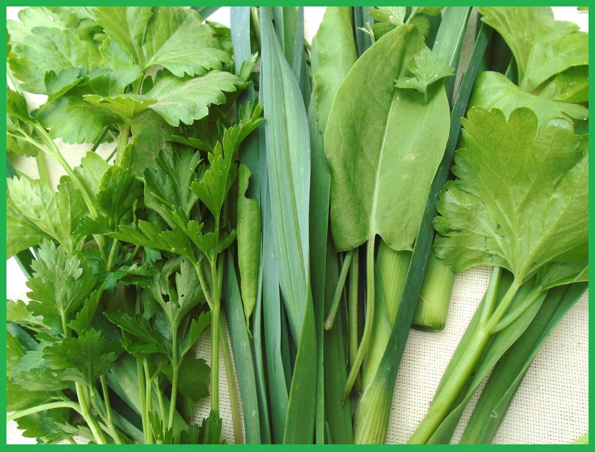 Длительное хранение зелени в холодном месте – привычное дело для жителей Кавказа, где этого добра много, а климат жаркий. Зелень, предназначенную для такого хранения, не мыть, но тщательно перебрать от случайных травинок. А если зелень оказалась мокрой, ее стоит просушить полотенцем и даже выложить на 1 час для просушки. Для хранения подходит перьевой лук и чеснок, укроп, петрушка, кинза, базилик, мята, мелисса, листья сельдерея – в общем, все перьевое или веточками.